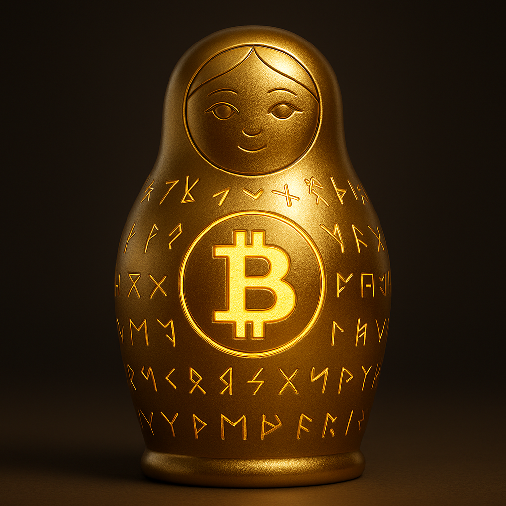 BSV Matryoshkas: Golden shells, porcelain cracks, cosmic cores layers revealing eternal truth.